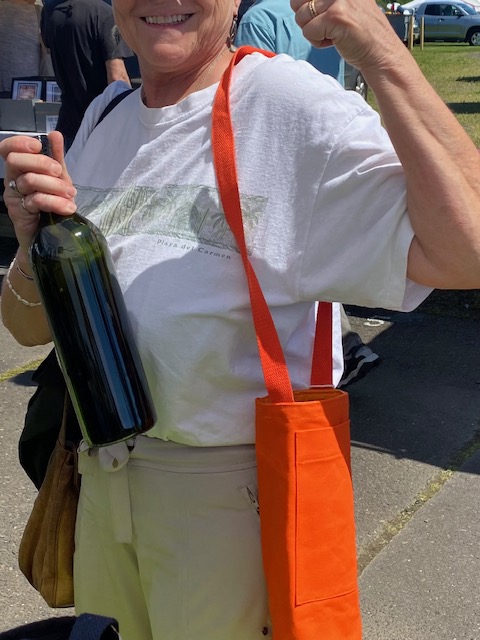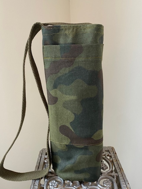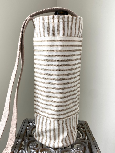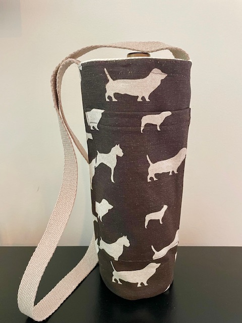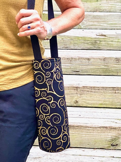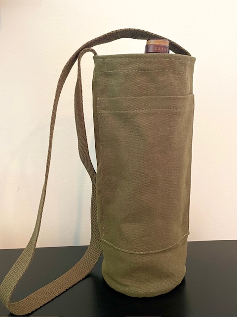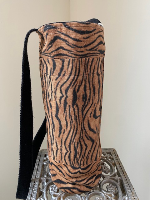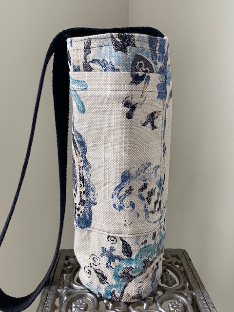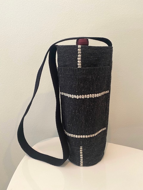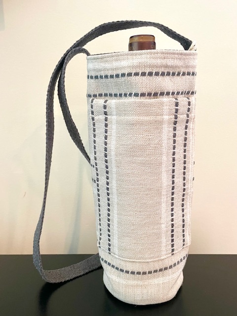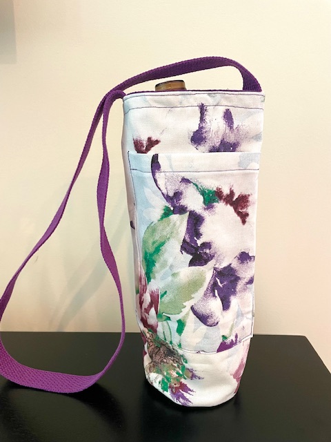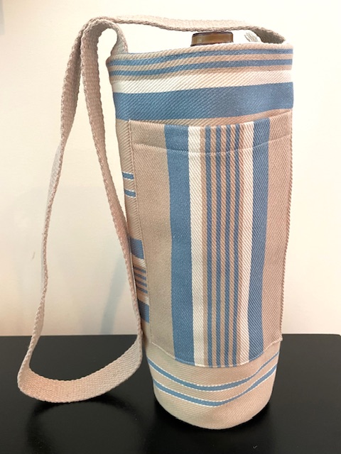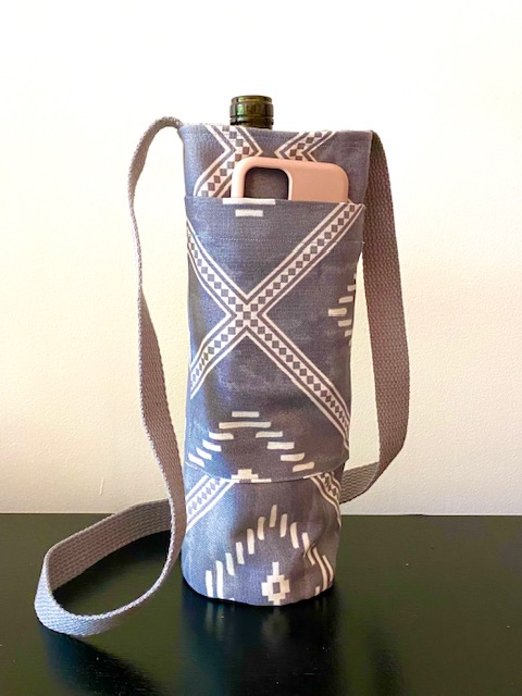 Each handsfree Wine Tote measures approximately 12″ in height and 4″ in diameter. All bags have an exterior cellphone pocket and are lined with sturdy canvas fabric. Straps are at a fixed length of 34″ and can be ordered in most matching combinations of color to the bag. Wine Totes are available in the same fabrics as the Bucket Bags. To inquire about purchases, please send us a message detailing which bag you are interested in! Please note that some fabric patterns are in limited quantity. Price is $30.00 plus shipping and handling.